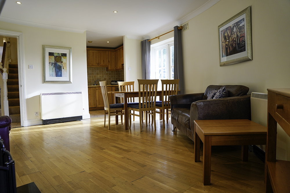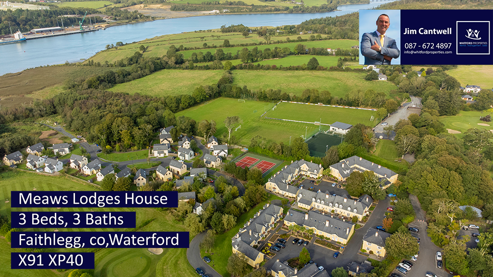 We are proud to bring this very desirable two story terraced property in the beautiful grounds of Faithlegg Hotel and Golf Course to the market. The property is very tastefully decorated and in turn key condition. Ideal starter home or holiday home. Viewing of this excellent property very strongly recommended. Downstairs there is an open plan kitchen/dining/living area. It is bright and modern and has a cosy open fire. The dining area has table and chairs while the sitting room area features a TV . The well equipped kitchen features all the appliances you will need for yout self-catering stay in Waterford.